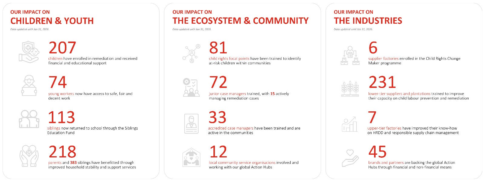 • Brands can select from different Child Rights Action Hub Participation Packages, each with varying levels of production site coverage (contact us to learn more)