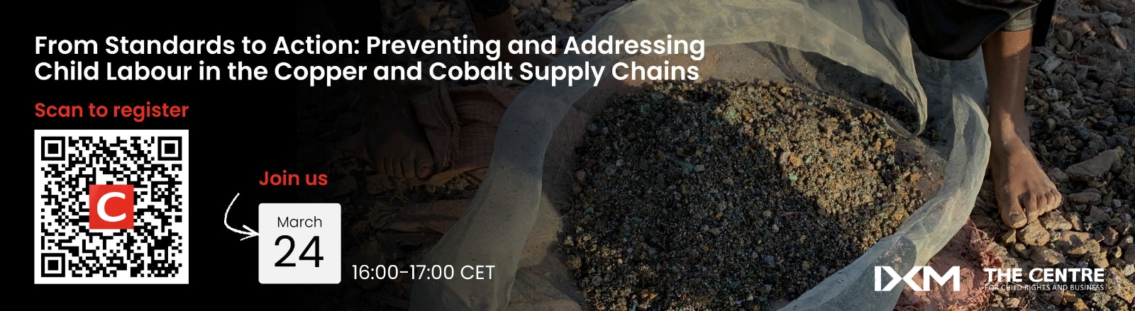 The Centre for Child Rights and Business and IXM are co-organising a webinar, “From Standards to Action: Preventing and Addressing Child Labour in the Copper and Cobalt Supply Chains,” on March 24, 2026 from 16:00-17:00 Central European Time (CET).
