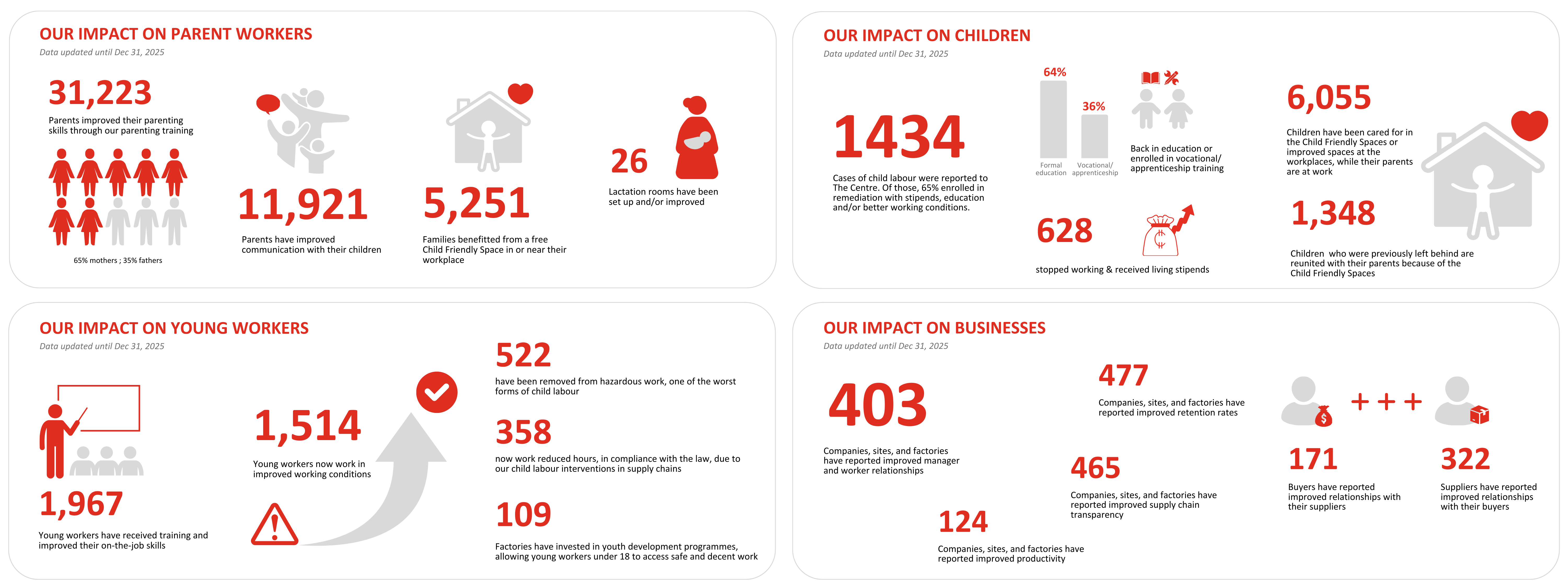 Our work positively impacts the lives of children, working parents and young workers and contributes towards more sustainable supply chains.